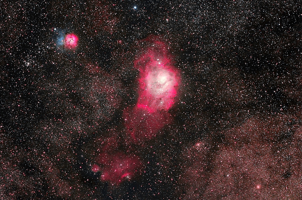 Описание: Туманности «Трёхраздельная» и «Лагуна»